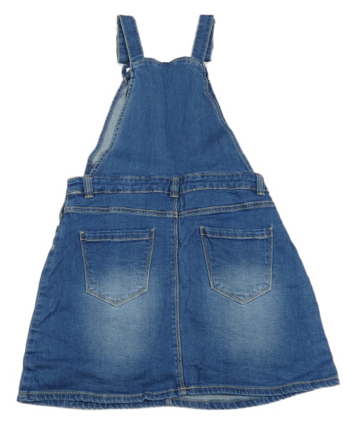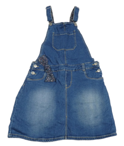 Modrá rifľová na traká sukňa s mašlou Vertbaudet