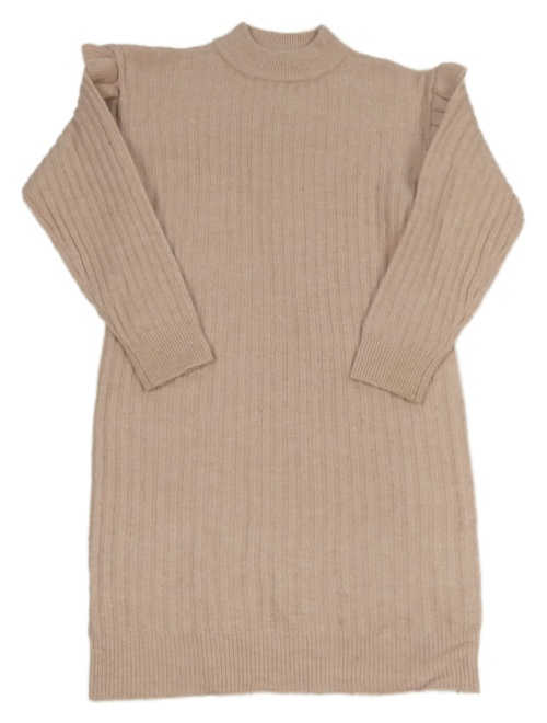 Svetloružové rebrované svetrové šaty s volánikmi George
