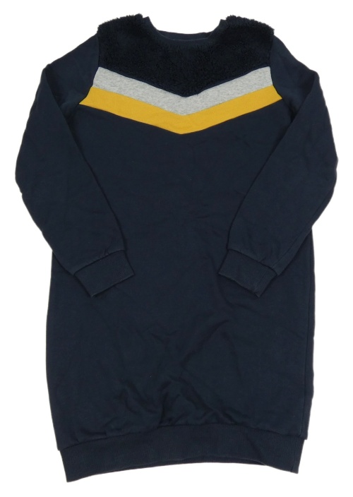 Tmavomodro-hořčicovo-sivé teplákovo/huňaté šaty jbc