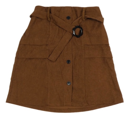Hnedá menšestrová sukňa s gombíkmi a opaskom SHEIN