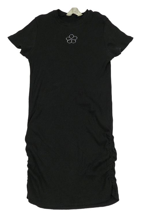 Antracitové rebrované šaty s kamienkami a nařasením H&M