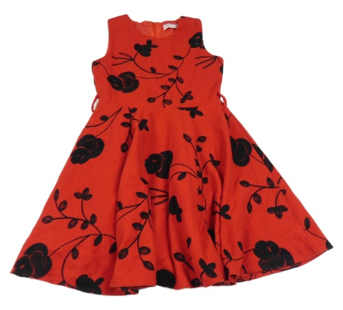 Červené fleecové šaty s čiernymi vyšívanými kvety