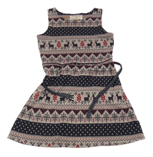 Béžovo-tmavomodro-červené úpletové šaty so sobmi a norským vzorom a opaskom New Look