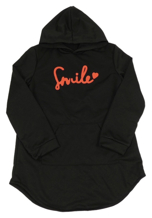 Čierne teplákové šaty s nápisom a vreckom a kapucňou