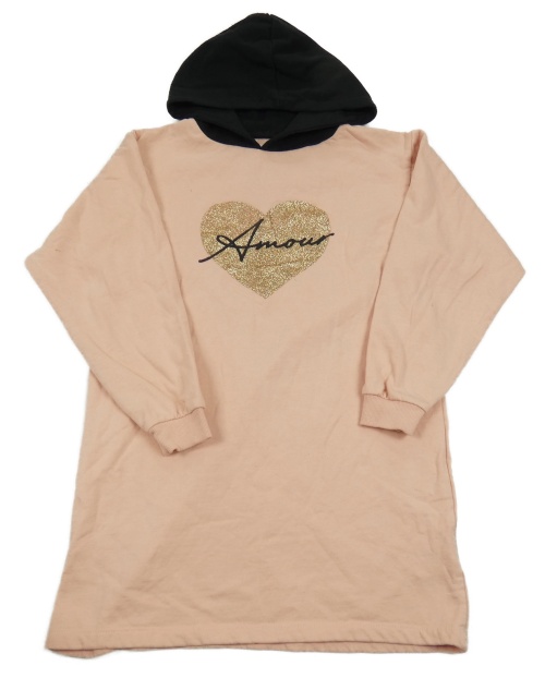 Ružovo-čierne teplákové šaty so srdcem a kapucňou ThreadGirls