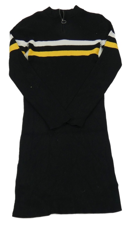 Čierne rebrované pletené šaty s prúžkami C&A