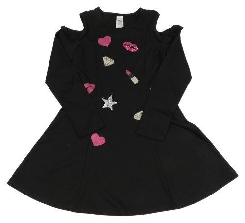 Čierne šaty s obrázky, flitre a volnými rameny H&M