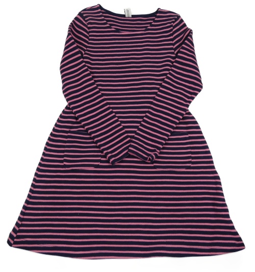 Tmavomodro-ružové pruhované pletené midi šaty s vreckami Yigga