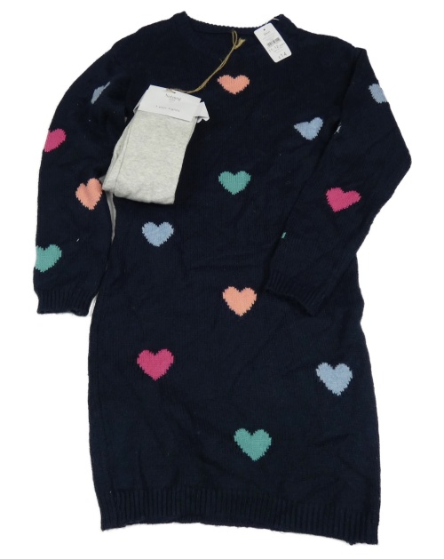 Nové - 2 set - Tmavomodré svetrové šaty so srdíčky + sivé melírované pančuchy Nutmeg