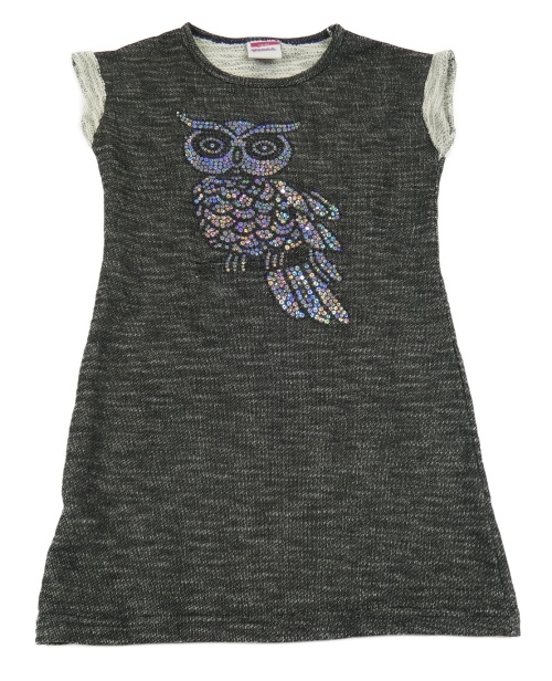Čierne melírované teplákové šaty so sovičkou z flitrů YIGGA