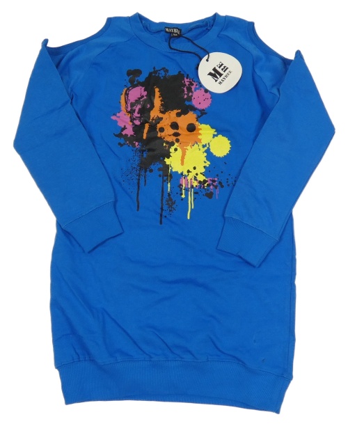 Nové - cobaltovoě modré teplákové šaty s lebkou a skvrnkami a volnými rameny MAYBEE