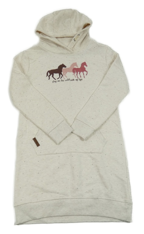 Béžové melírované bodkovaná é teplákové šaty s koňmi a kapucňou Yigga
