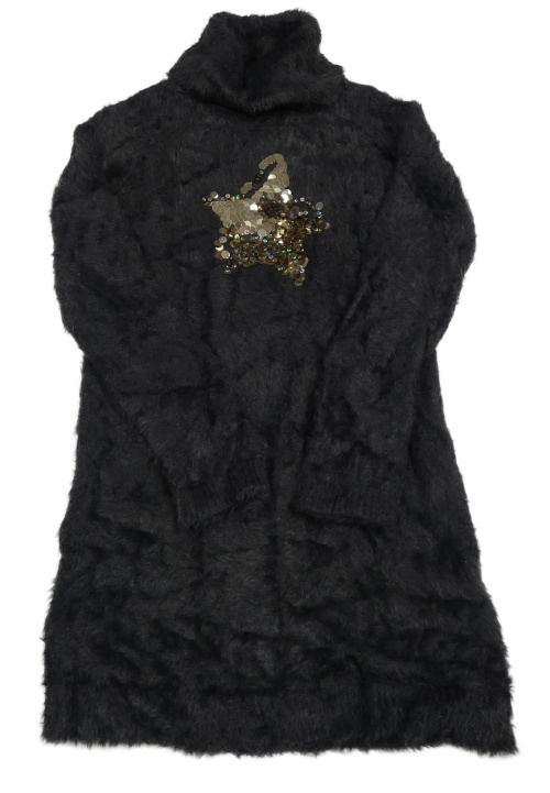 Tmavosivé chlpaté svetrové šaty s hvězdou z pajetek a rolákom Inextenso