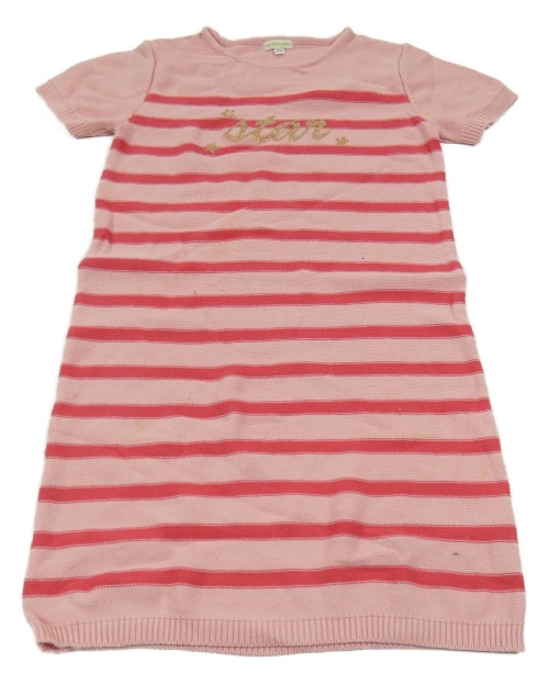 Ružovo-tmavoružové pruhované svetrové šaty s nápisom s hviezdami Vertbaudet