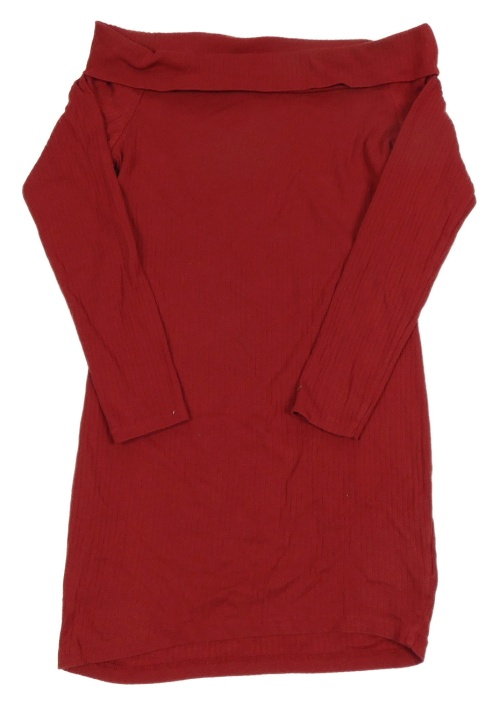 Rubínové rebrované elastické šaty s lodičkovým výstřihem H&M