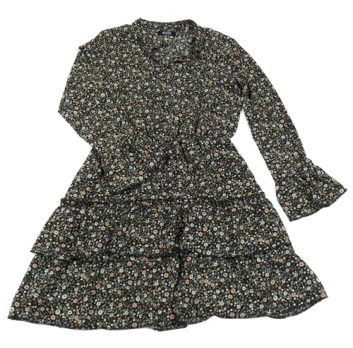 Čierne kvetované ľahké šaty s vrstvenou sukní Europe Kids