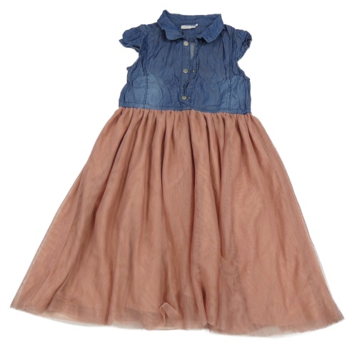 Tmavomodro-staroružové riflovo/tylové šaty Name it