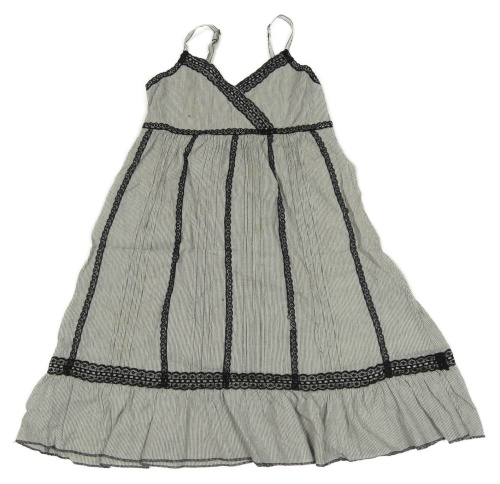 Čierno-biele pruhované plátenné šaty s čipkou H&M