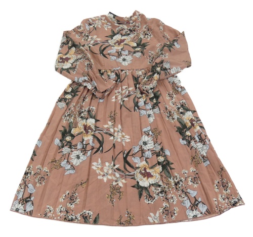 Staroružové kvetované ľahké šaty s plisovanou sukní