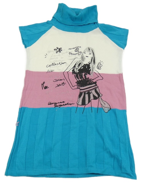 Modro-ružovo-biele pletené šaty s dívkou a rolákom
