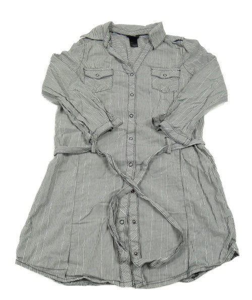 Tmavošedo-biele pruhované trblietavé prepínaci košeľové šaty s opaskom H&M