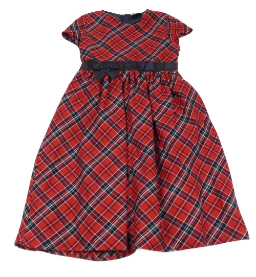 Červeno-tmavomodro-biele kockované šaty s mašlou Yigga