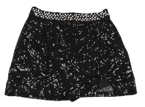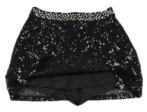 Čierna flitrová sukňa s perlami a všitými kraťasy