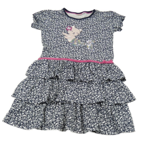 Tmavomodro-biele šaty s kočičkou/mořskou pannou s flitrami a volánikmi Kids