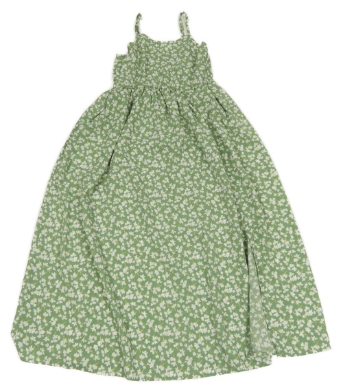Zelené ľahké kvetované dlhé šaty s rozparkem