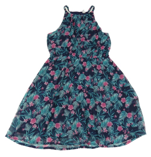 Tmavomodro-ružovo-zelené kvetované šaty s listami Yigga