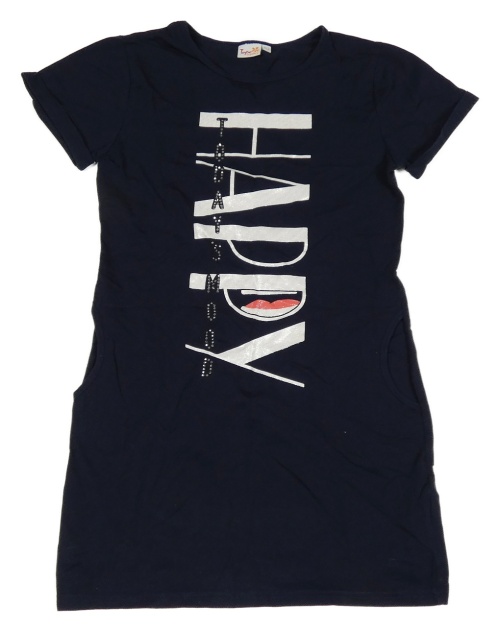 Tmavomodré bavlnené šaty s nápisom