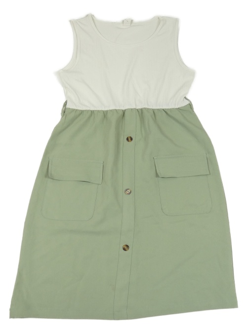 Bielo-zelené šaty s gombíkmi a vreckami Shein