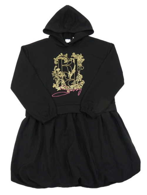Čierne teplákové šaty s potlačou a volánikom a kapucňou River Island