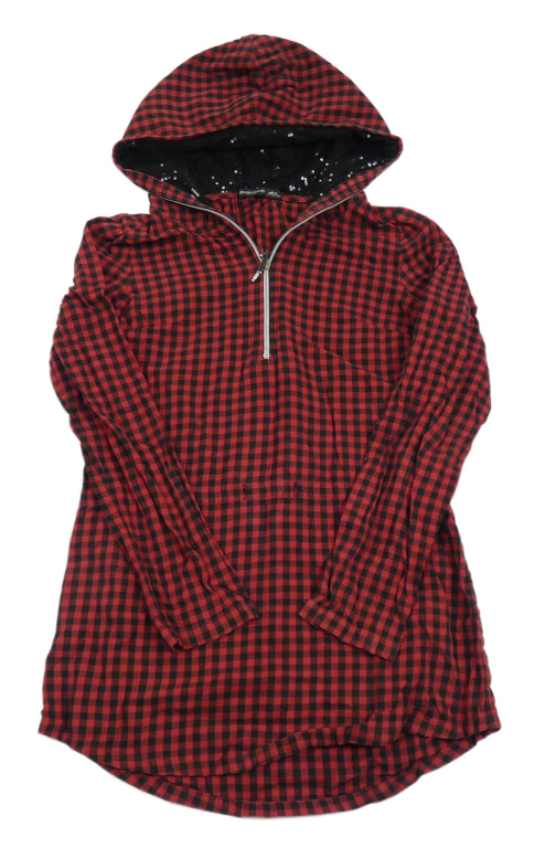 Červeno-čierne kockované šaty s kapucňou