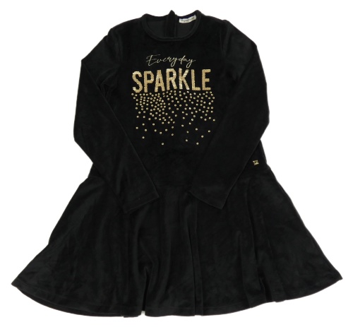 Čierne zamatové šaty s nápisem z flitrů