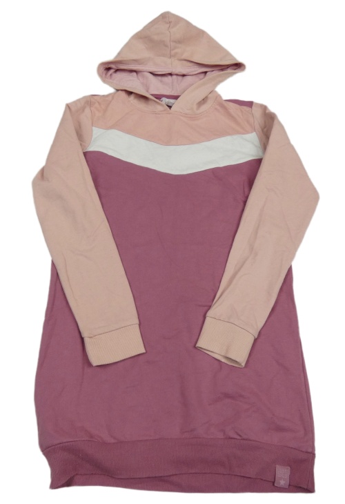 Ružovo-bielo-vínové teplákové šaty s kapucňou