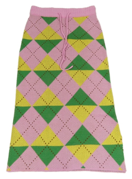 Ružovo-zelená károvaná pletená dlhá sukňa