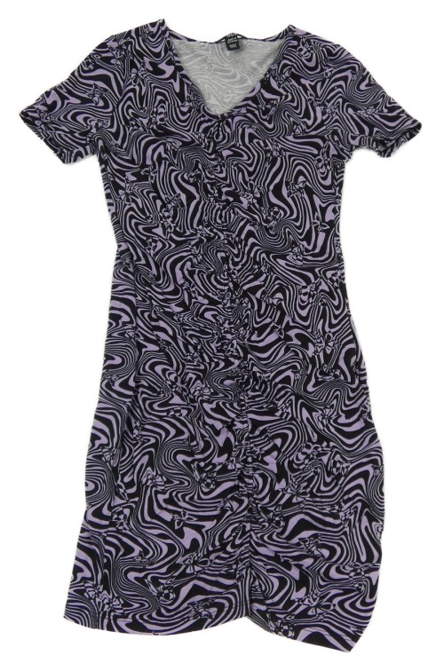 Fialovo-čierne vzorované elastické šaty s motýlikmi a nařasením New Look