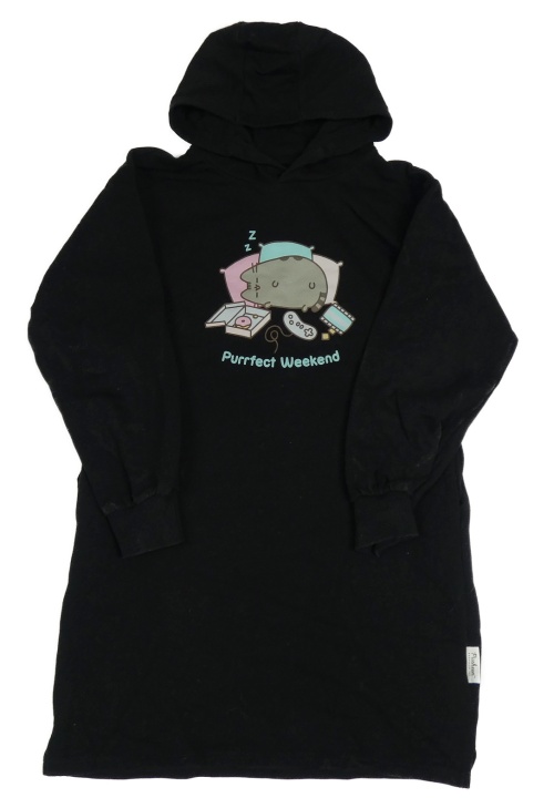 Čierne teplákové šaty s mačkou a kapucňou Reserved