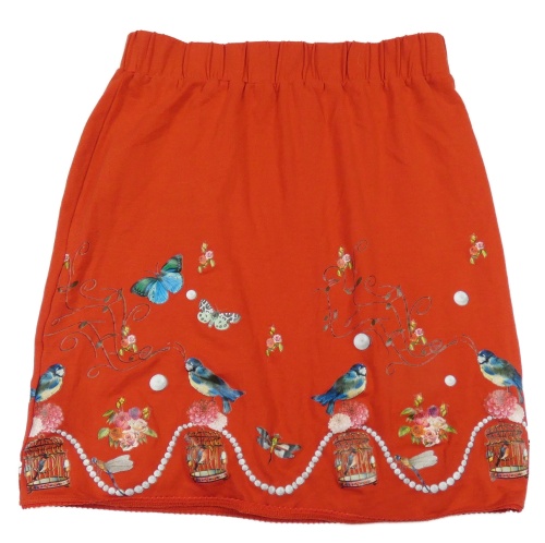 Červená sukňa s motýlikmi a vtáčky a růžemi