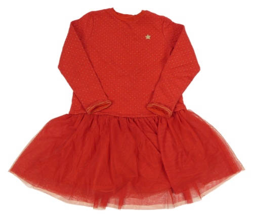 Červeno-zlaté prešívané teplákovo/tylové šaty s hviezdičkou Vertbaudet