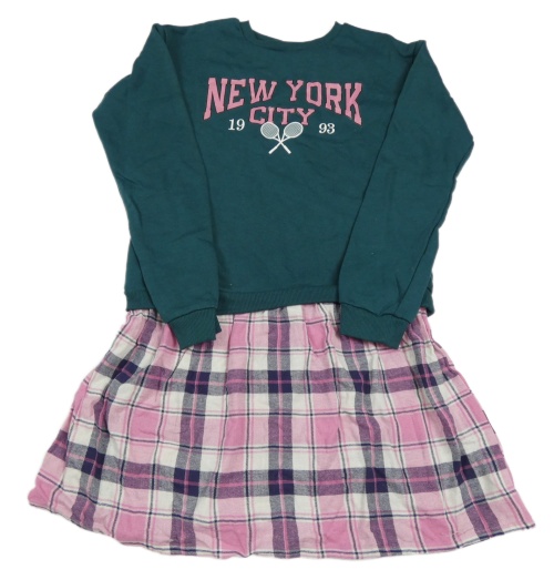 Tmavozeleno-kockované teplákovo/plátěné šaty s tenisovými raketami Y.F.K.