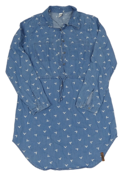 Modré ľahké rifľové šaty s vtáčky Yigga