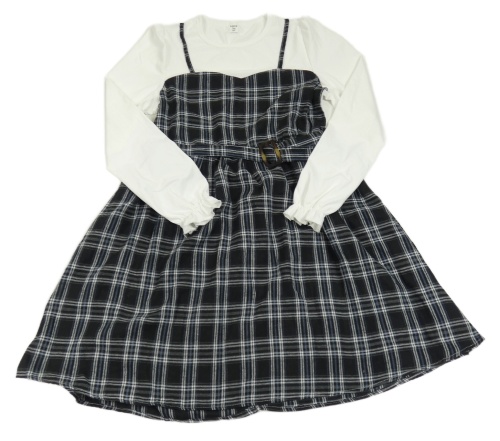 Čierno-bielo-modré kockované rebrované šaty s opaskom SHEIN