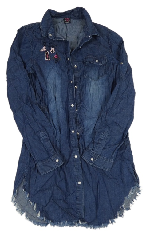 Tmavomodré propínací košilové šaty riflového vzhledu s nápisom Y.F.K.