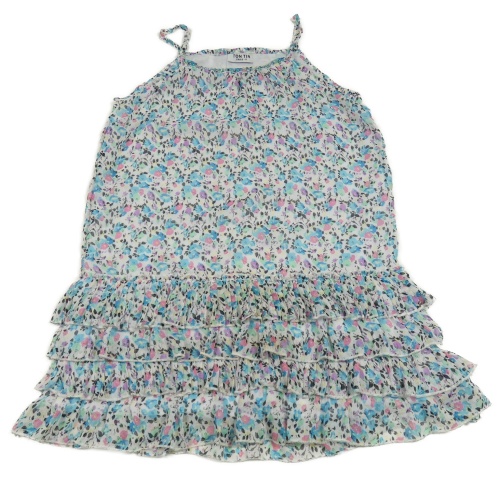 Bielo-farebné kvetované šifónové šaty s vrstvenou sukní