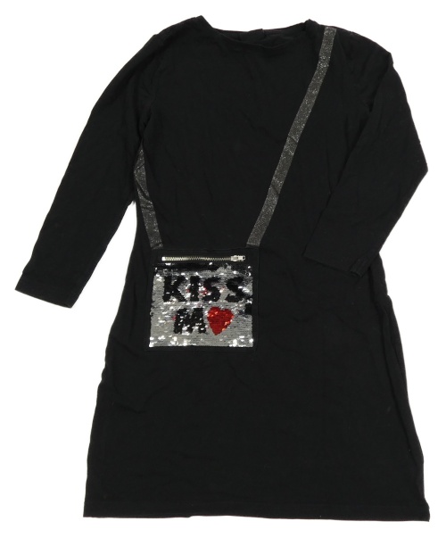 Čierne bavlnené šaty s kabelkou s překlápěcími flitre Page One Young