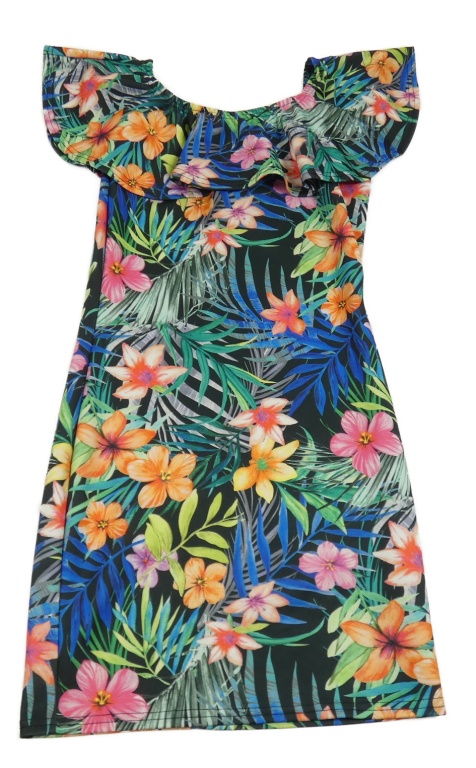 Čierno-farebné kvetované šaty s volánikom E-Vie
