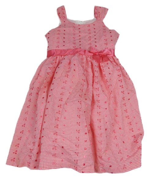 Tmavorůžovo-biele kockované šaty s výšivkami a mašlou