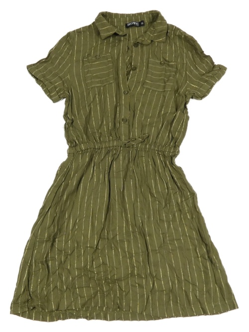 Kaki-zlaté pruhované ľahké košeľové šaty